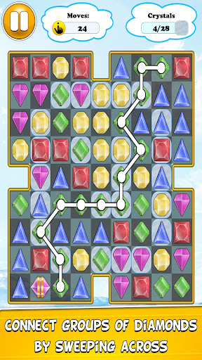 Play an addicting game of connect diamonds. Connect groups of identical diamonds by sweeping across. You must connect 3 or more diamonds in order to ignite a blast. Trace a path from the first diamond to the last diamond from that group without overlapping. When ready, release the diamonds you connected and they will blast one by one. Connecting a large group of diamonds will earn you bigger and bigger scores and the chance to generate special diamonds. At advanced levels you may need to use strategic special diamonds in order to win.