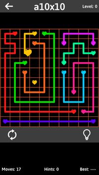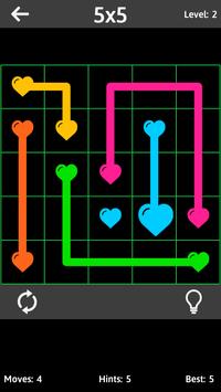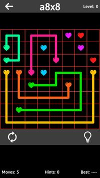 Connect matching colors with pipe to create a link. Pair all colors, and cover the entire board to solve each puzzle in Connect The Hearts. But watch out, pipes will break if they cross or overlap!