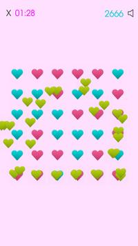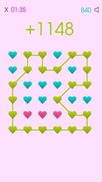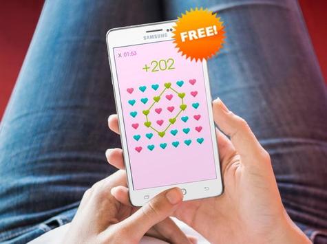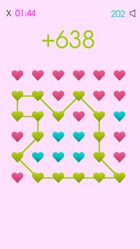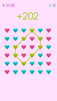 How to play: Simply move your finger over at least 3 hearts of the same color in a way that you connect them all together - you must connect the last heart in your created chain with the first heart so there is a closed chain of hearts! Please review the screenshots to see how to play. Remember, bigger heart chains you create, better score you get! Submit your score at the end of the game to a global leaderboard to see who shares the most love! More games you play = better overall score you get, to submit the overall score just tap on it!