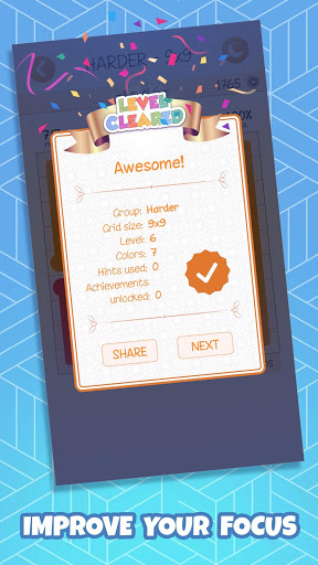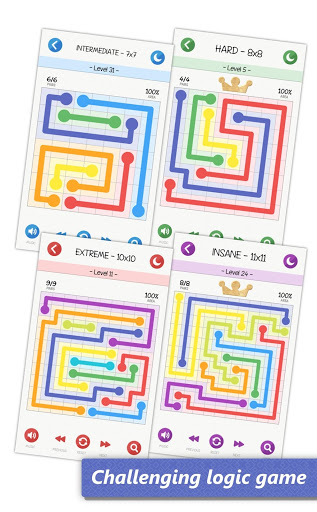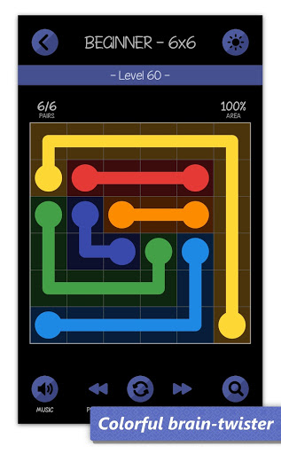 In this fun logic game the goal is to connect all dots of the same color with the flow. Free simple yet challenging. You can choose from easy relaxing 6x6 boards to brain twisting 12x12 boards.