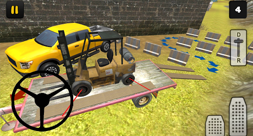 In this Forklift Transport edition of Construction 3D you'll have to transport the forklift with a car and trailer. On the construction site the workers need a forklift. You as the driver are responsible to transport the forklift with a car and trailer to the construction site. In 15 levels you'll face realistic situations where you have to transport the forklift. You'll face reverse driving levels as well as forward driving levels. To finish a level you first have to load the forklift, to do that follow the blue arrows. The forklift will load automatically. After you've loaded the forklift you have to attach the trailer, to do that follow the red arrows. Finally you have to park your car and trailer, to do that follow the yellow arrows.