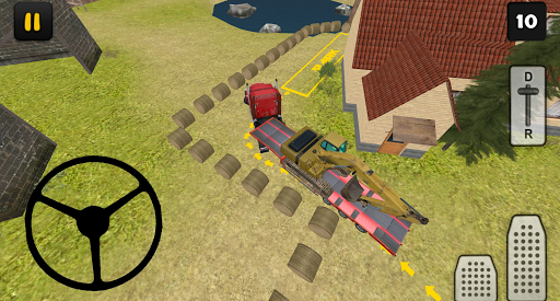 In this Excavator Transport edition of Construction Truck 3D you'll learn how to transport an excavator with a truck and trailer. Driving with a truck and trailer loaded with an excavator is not always easy. You need to know the height and width of your load for example, otherwise you'll easily hit an object. To finish a level you first have to attach the trailer, to do that follow the red arrows. After you've attached the trailer, you have to park your truck and trailer, to do that follow the yellow arrows.
