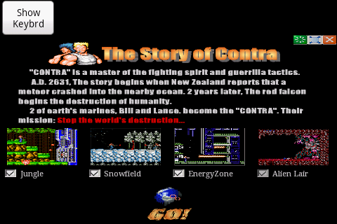 Classic game Contra World challenge The arrow keys to control the movement, J:Fire K:Jump, S1:J+K Attention:Only provides the android game running environment. All copyrights are reserved to the original author.If you think we violate your rights, please e-mail us, we'll response ASAP.