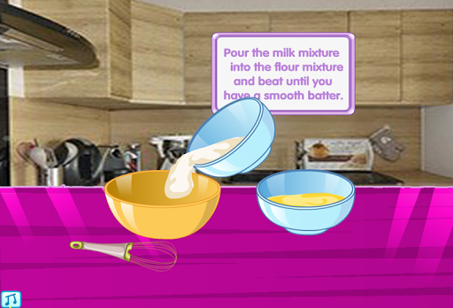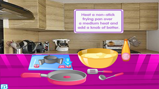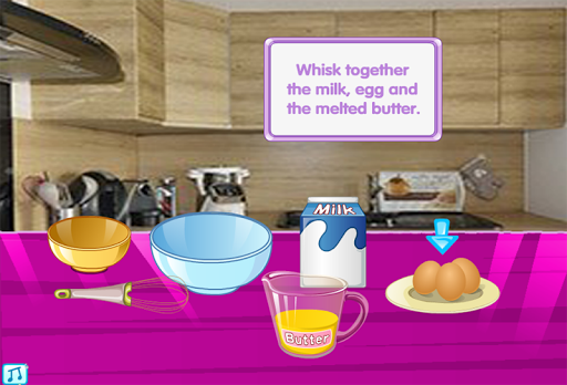 In this game you'll cook delicious pancake which is always favorites for all age people. Make attractive colorful and sweet pancake to satisfy your hunger. To start cooking pancake, first you need some ingredients like flour, sugar, butter, baking soda, milk and egg. Mix all ingredients and bake it in oven, make sure it does not burn while baking! Once it's ready then decorate is with huge collection of sprinkles, frostings, toppings and many other decorative items. There is lots of fun by making pancakes and it's all free to play