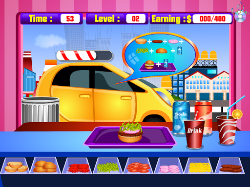 Burger party for racing drivers - Hey Guys, you have to put up your Burger Stall in the Racing Track and the challenge for you is to make a quick burger for the racing drivers. You do not have much time because the pit stop is just for few seconds. You have to select the ingredients stand, fries, fruit juice, bagel burger, onion, lettuce, tomato, cheese, meat burger, and add a little ketchup. Please note that every racer leader wants different burger, and you must meet the requirements.