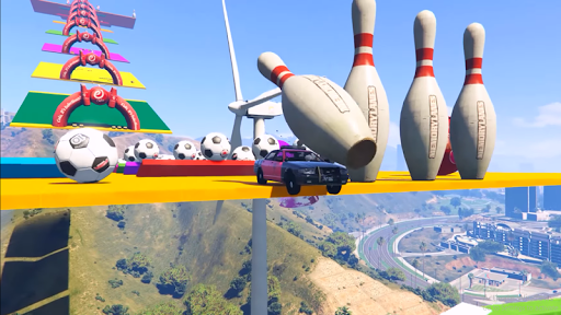 ⭕ Hit the Bowling Balls, Santa’s, Drink Cans and many other items to get Coins to Unlock your Superhero Cop Cars.