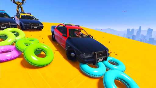 We know you played many superheroes car racing games, farming tractor games and bike racing games in free style but you will play First Time cop cars stunts racing between super league champions in amazing cop car superheroes stunt racing game.