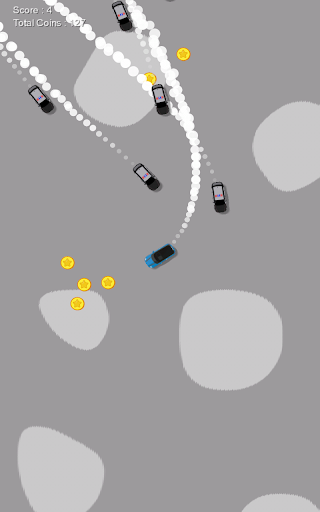 Run!! Police cars are chasing you! Hold your steering strong and evade them away. Make your way through power-ups, speed-ups, bombs, and coins. Level up and speed up your vehicle, do not get busted. Ready to take the challenge?