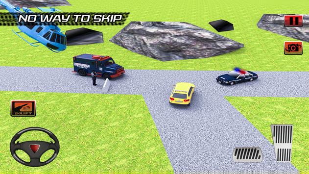 • Drift police cars through the curved roads.