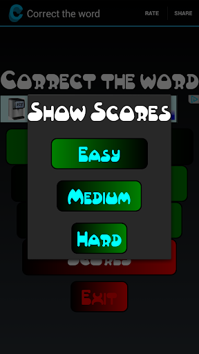 1, 2 or 3 wrong letters is inserted in each word depending on the difficulty level(Easy, Meduim, Hard)