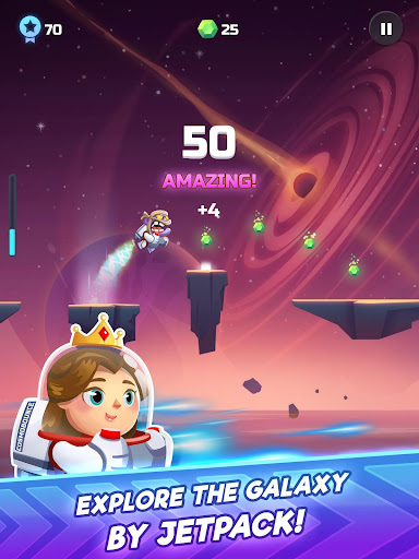 SIMPLE GAMEPLAY: Just tap to control the trajectory of your jetpack and fly your heroes to ever-farther pieces of floating space rocks.