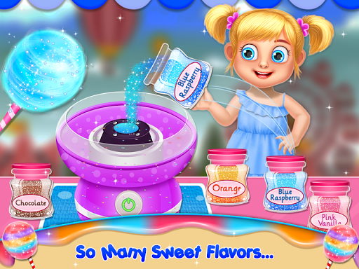Have you ever visited fun fair in your city? We cannot imagine Fun Fair without Cotton Candy! All age people love to eat cotton candy when they go for fun fair. Specially, kids very much like cotton candies. So we give you chance to become a Cotton Candy shop owner and make your own delicious cotton candies with given variety of color flavors and different shapes.