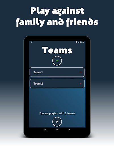 Nice game with good interface. Worth to buy. Enter your team's, enter names if desired, choose categories, play and have fun. One remark: it would be nice to see the end result in points at the end of the game. E.g. 30-25