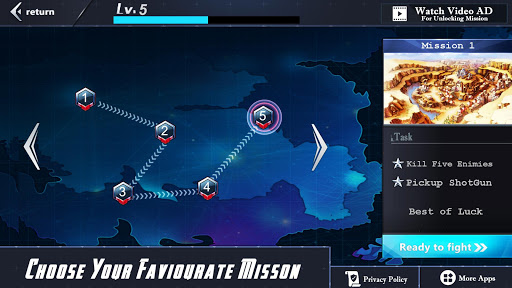 game. You have to use Multiple weapons In all different levels. You accurately identify your target and quickly destroy the enemy. When you start shooting then enemies know you presence and search for you everywhere and attack you on search. Counter Attack FPS War: Army Game is a startegic and needs skills to pass the Missions.Many levels you have to pass by picking up guns for next level and In some levels you have to rescue your friend from enemy to complete the Mission.Last Mission you have to survive by running away and kill all of the enemy soldiers using mines.