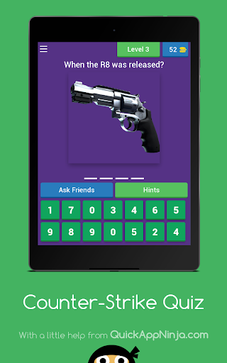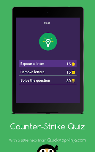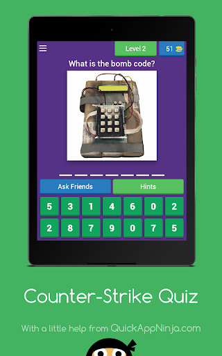 Counter-Strike Quiz is the ultimate game quiz on Android, involving the popular game "Counter-Strike"! Challenge your friends to see who can solve the most questions about this prestigious game!