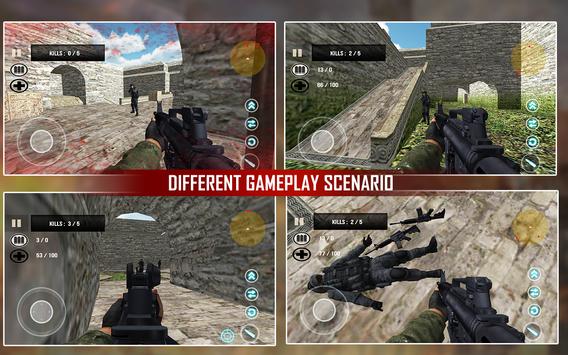 Counter Terrorist Attack War game is a full action packed war shooting game. Shoot your enemies with new destructive weapons like pistol, shotguns, MP-5, M-4, AK-47 and Sniper rifle. Shoot them at site! You are a deadly marine commando from anti-terrorist shooter wing. Your base is under terrorist attack. Now It’s your life mission to defend your base from terrorist attack. Aim to shoot the head shots of your rival enemies, strive hard so that no terrorist can run away. With every targeted gun shots you would get in practice with your targets. Accurate and precise aim practice will lead to more accuracy and eliminate terrorism in frontier shooting showdown. Keep in mind; he is the vicious deadly terrorist you are going to swat & kill. In Counter terrorist attack war game You have a lot of choice of weapons like pistol, shotguns, MP-5, M-4, AK-47, and sniper rifle from your inventory. You have limited ammo so beware of each bullet you fire because saving your base from terrorist attack is not an easy task. If ammo ends you will die.