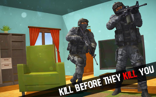 The counter terrorist is holding weapons. His aim is to kill the Terrorists.The terrorist enters silently in the house. First he check the security in the house. After observing the situation they enter in the hall room and starts firing like an unstoppable attackers. They think they are well skilled to survive the onslaught of the