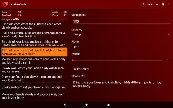 If "Use lover names" options is activated, the application will replace "your lover" and "your partner" with actual names during the game.