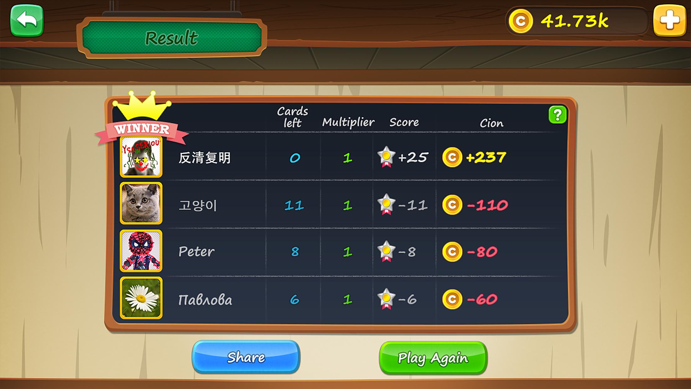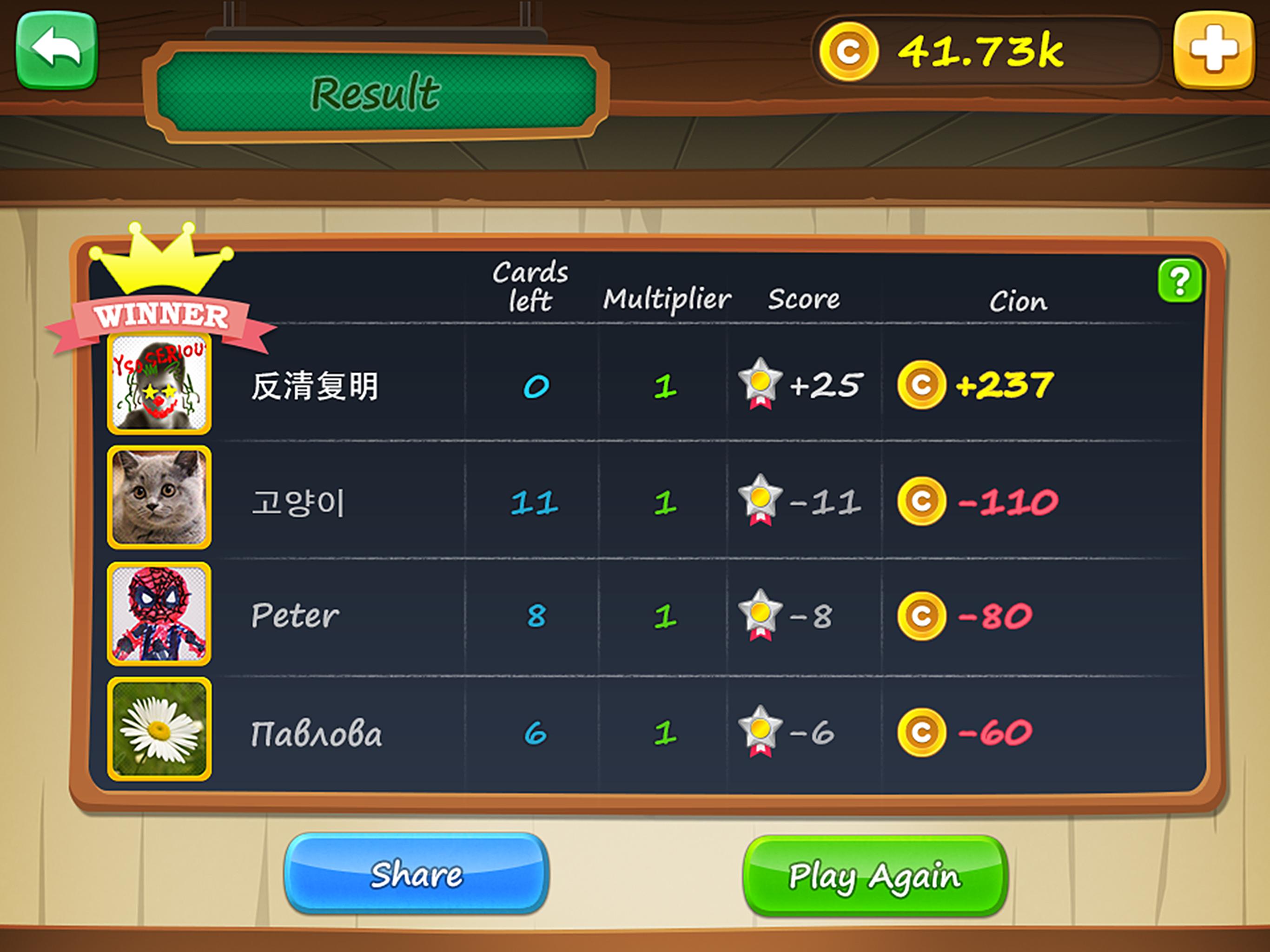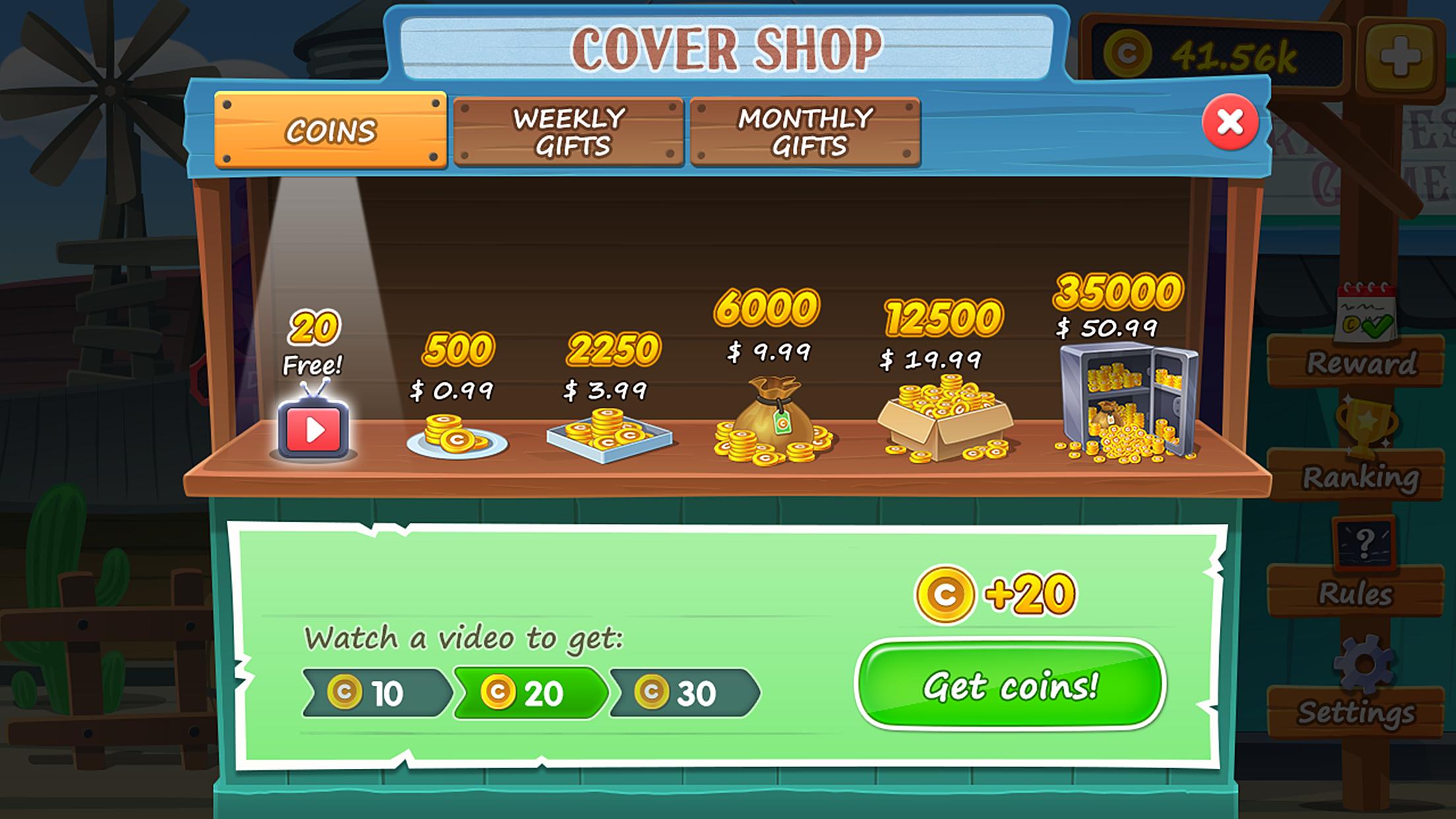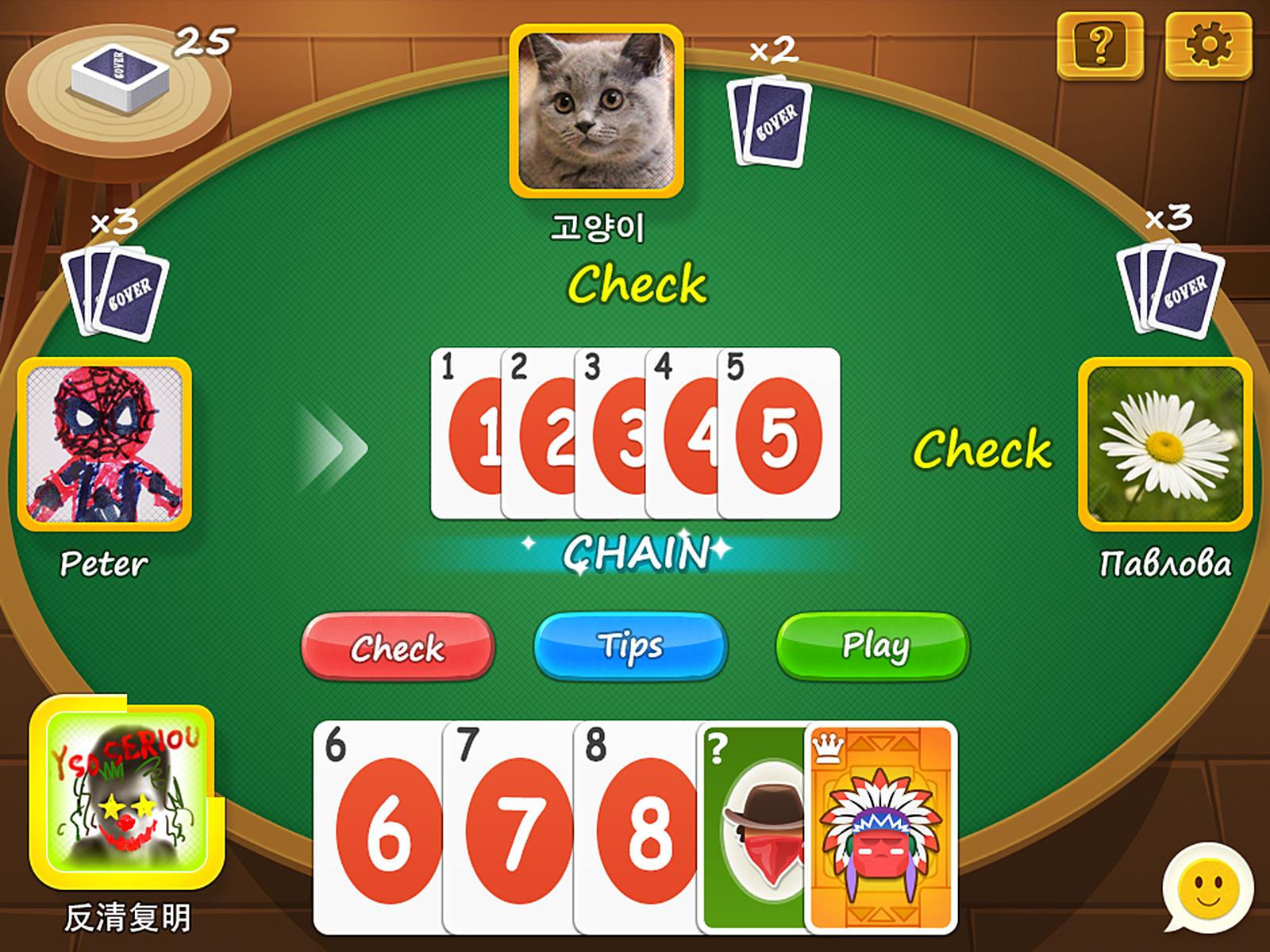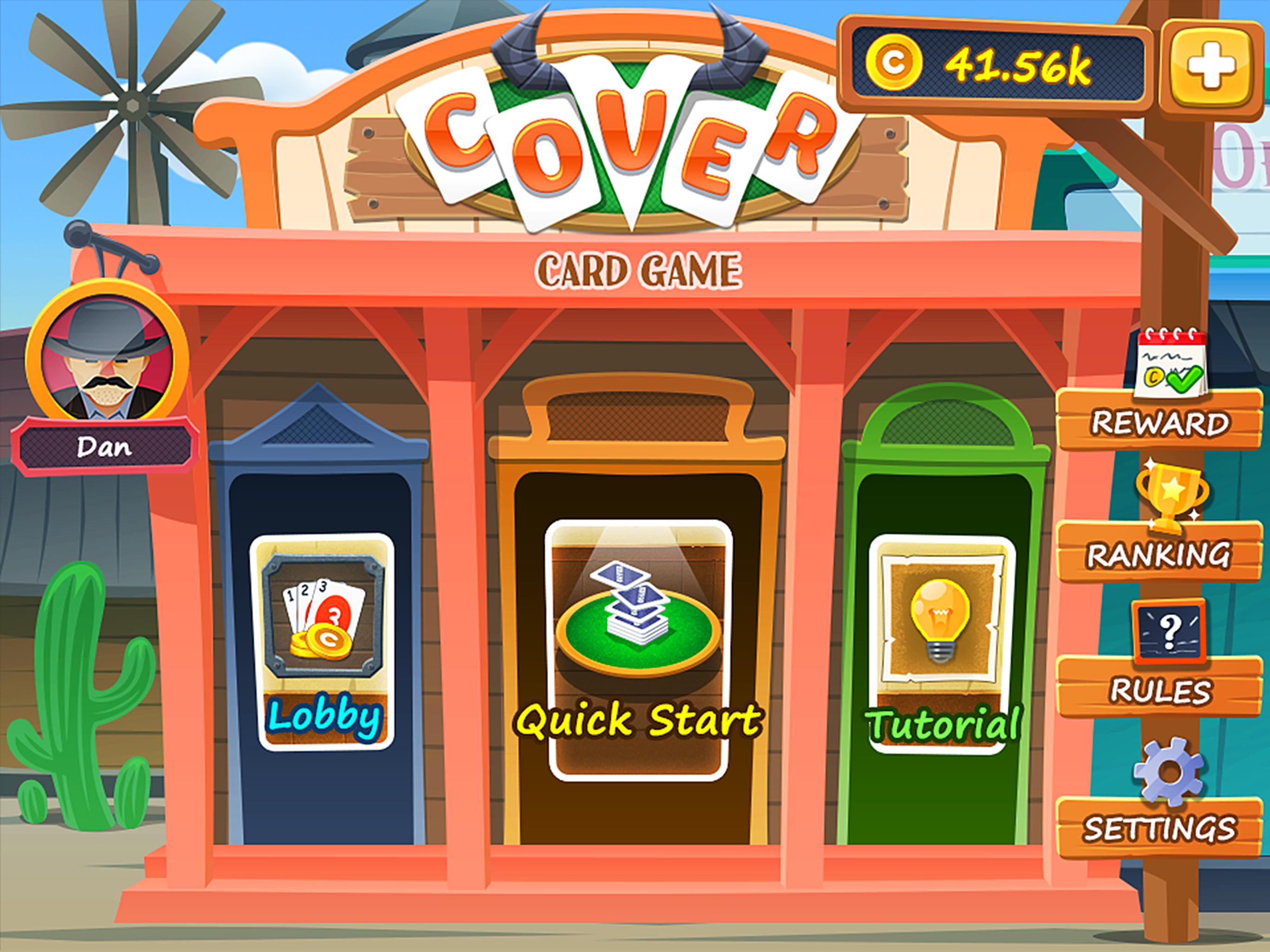 COVER is an exciting card game which is suitable for all ages. With easy-to-understand rules and fast-paced gameplay, this brand-new card game will ensure you and your friends a wonderful leisure time filled with joy and laughter. In COVER, your goal is to get rid of all your cards before anyone else does, and win game coins from them!