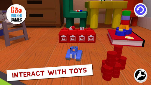 Take 'Pop Pop' your toy tank for a fun ride around the playroom. Use the toy tank to crash and bash into anything you like and use the toy tank's cannon to fire plastic balls and interact in different ways with the other toys and games scattered around the room.