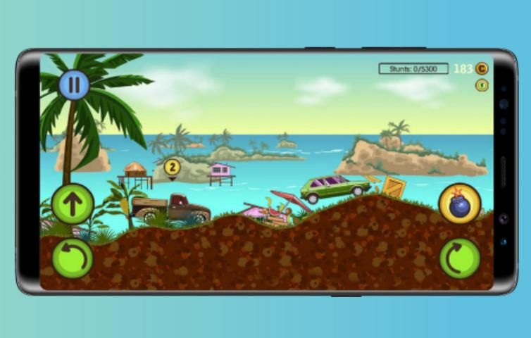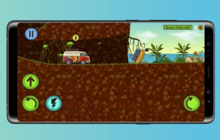 On a tropical island far away, a once-in-a-lifetime adventure is waiting for you! Compete in a crazy 2D car race for fame, glory and treasures! You start with an old hippie minibus which is reliable, but slow. And indestructable like every vehicle on this mysterious island! So don't worry about crashing your ride and concentrate on being the first to reach the finish line - no matter how.