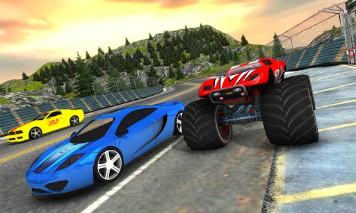 Start the new adventure of your life in an all-time speed race that is between crazy cars and monster truck racer, prove that you are the best driver and be the racing champion. Reach to the check point in best time and upgrade your monster trucks with the bonus cash collected.
