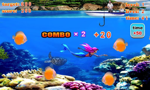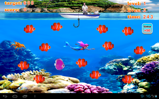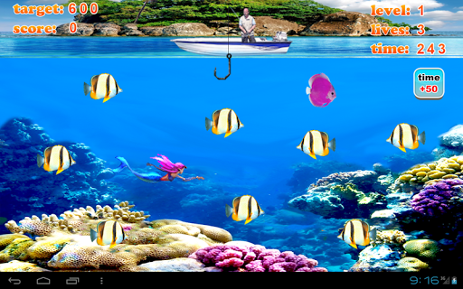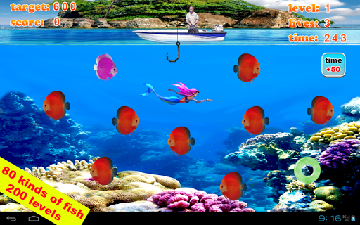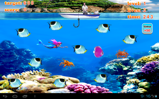 Tap the screen to shoot the hock to catch the fish!