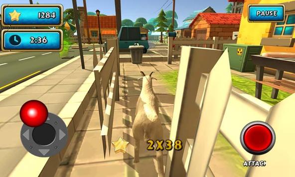 Crazy Goat Rampage Sim 3D is action, casual game, where you play as a crazy, angry, frenzy and stupid goat in city. Your aim is to cause destruction, mess, wreck, demolish, ram, smash everything interactive and also annoy citizens. In your mission you gain points and experience, the faster you get them the more bonus you recieve. Town environment contains a lot of obstacles such as explosive cars, pixel fence, barrels, block lawns, streetlights, street hydrants, cube dustbins and many other.