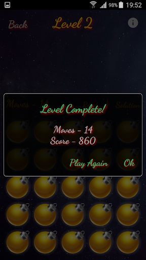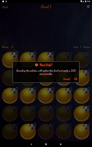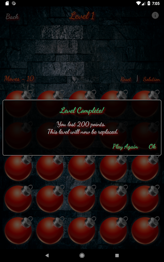 The app offers 80 different levels, unlocked and playable, each providing a solution, if you get stuck. Revealing the solution will apply a score penalty and will replace the level with a new one, ready to be played.