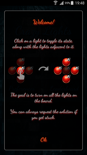 Crazy Lights is challenging, entertaining and addictive puzzle game which consists of a 5 by 5 grid of lights.