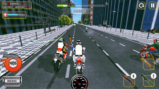 Ride your moto bike as fast as you can because you are surrounded by enemies. Attack on other rider’s by using weapons you have. Do fierce fighting to survive in moto bike battle. Show your driving and shooting skill in moto rider game. Control your bike in such way so that other rivals cannot touch you and you can win this motorbike race. Become traffic bike driver and win the race is your main goal in this Motorbike race. Doing motorbike racing, attack and shooting simultaneously will be attraction for you. You will be spending many hours in playing crazy bike racing game.