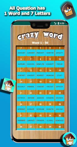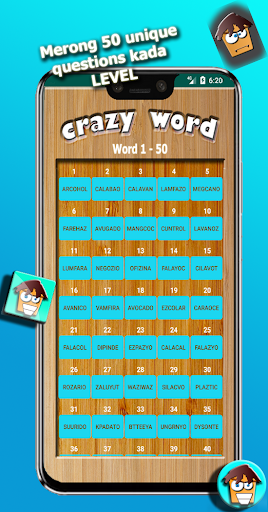 Newly created UNIQUE FREE word games called Crazy Word, that will make you crazy, unlock levels and receive rewards, this game is for fun and educative in terms of spelling and guessing of what the correct word for each word puzzle games question, Crazy Word ENGLISH question has 12 levels and each level has 50 unique questions, while Crazy Word FILIPINO question has 8 levels and each level also has 50 unique questions and you will receive rewards by answering the correct word.