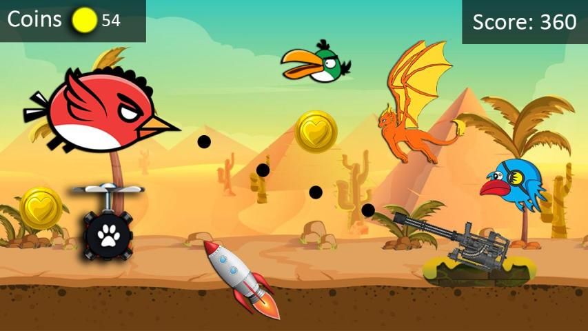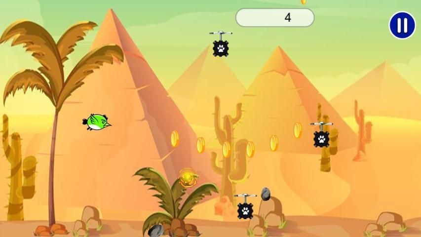 The faster you will become as you dodge the enemies multiple times over mines, obstacles, slide beneath mountains & rocks to catch different bird power up to double your gems & coins. The longer you run in this tricky desert full of action & adventure the better you become. Dash past other obstacles such as rocks mountains, dash monsters, rush obstacles, jump over temples and run through all angry monster birds characters. Challenging stages and surroundings are made of desert trees, rocks, mountain bushes, enemy tanks that are waiting for you in the desert heat jungle with crazy monster bird adventure hyper casual game.