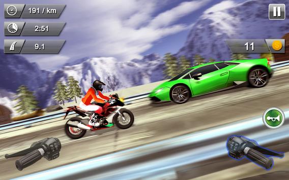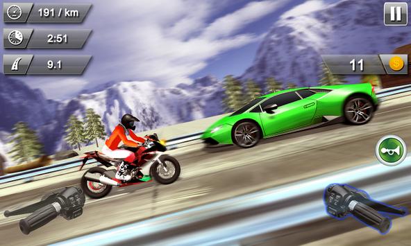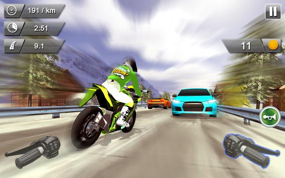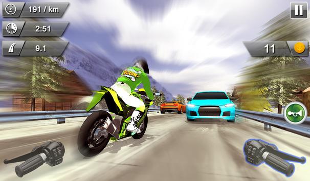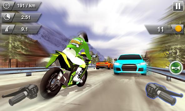 Crazy moto bike rider - heavy traffic bike racing is one of the best motorcycle racing game among all new racing games available in the store. Get yourself ready for riding on the busiest highway of the town among heavy traffic vehicles. Enjoy this most thrilling and challenging heavy bike racing game for utilizing your spare time in the best way. The highway is fully loaded with different types of vehicles like cars, buses, heavy bikes etc. and you have to cross these vehicles with high speed and care for competing for other road racers. You have to be very careful while riding your superhero bike because any hit with vehicles may cause serious accidents and you might lose the game of real race. Ride your dirt bike as fast as you can for leading this runner racer mania and beat your racing rivals for becoming best traffic racing rider. Grab the handle of your bike firmly with a fast turbo for extremely high speed on the city highway for winning against your race rivals in this racing free game. You have to go for enjoying bike ride as far as possible with fast speed for earning maximum cash so that you can purchase more powerful and luxurious bike for competing with your racer enemies.