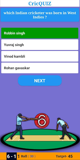 This game provides you all type of multiple choice cricket question and answer. In this game 5 overs and 10 over formats are there. A randum target will given to you. Answer within 2 second you will get 6 runs, answer within 2-4 second you will get 4 runs, Answer within 4 to 6 second you will get 2 and if you answer the question within 6 to 8 second you will get 1 runs. If your answer comes after 8 second you not get any runs for that. Every wrong answer will taken as OUT.