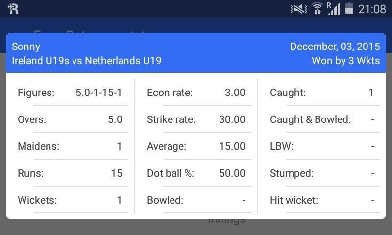 • Get key stats on your bowling performance like bowling average, econ rate, strike rate, modes of dismissal, dot ball percentage & total wickets.