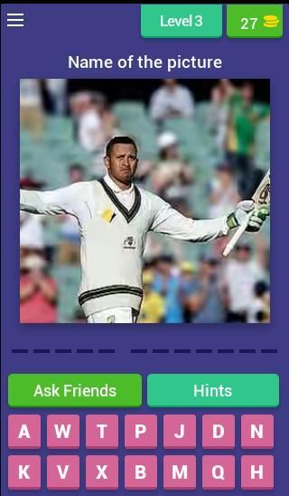 Cricket player Quiz Games with more then 50 Level and Most of popular Cricket player available in this games.