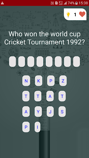 In Cricket Hard Quiz there is no multiple option to choose there is shuffled characters to answer them.