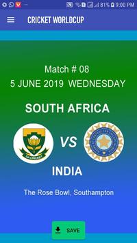 This app gives you complete schedule of world cup 2019 along with live match score of icc cricket when worldcup starts and matches will be live.