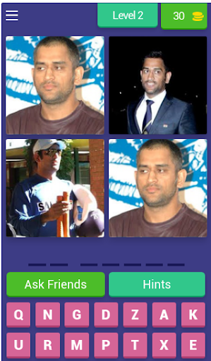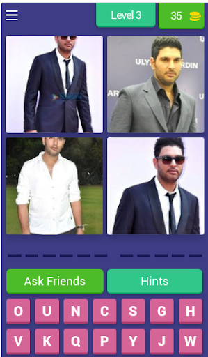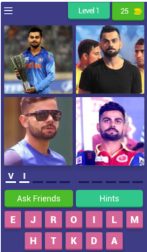 play the game Cricketer Quiz by seeing given images of players and earn points like share comments in play store Facebook and twitter hike and enjoy