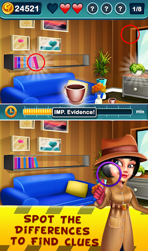 Find the difference in crime scenes to solve cases in detective mystery game.Solve each case with exciting stories, find clue with mini game and arrest the thief/killer.