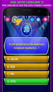- Game will be covering various topics like GK (General knowledge), Indian History Quiz, Cricket Quiz, Bollywood quiz, film quiz, History quiz, International quiz and questions from almost all the topics like Social Science, Science, Mahabharata, Ramayan, Quran, Bible, spiritual questions and difficult questions too.