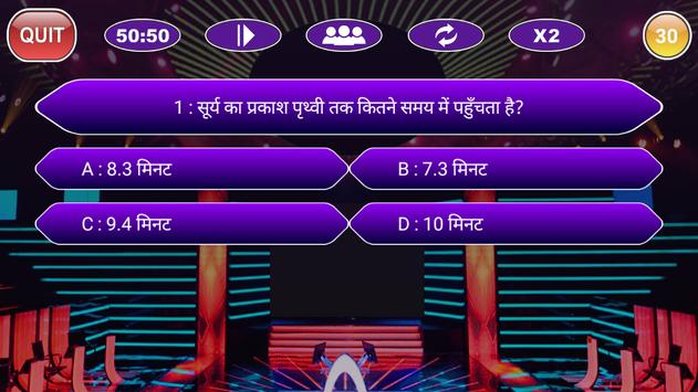 KBC 2018 is a very famous game format now a days for all the MCQs. We are going to bring you all the kind of questions like: General knowledge questions, English learning quiz, cricket quiz, bollywood , tollywood, physics, hollywood quiz and quiz from the subjects like indian history, geography, kbc in marathi, kbc in english, kbc in gujarati, kbc in bengali, gk in kannada, gk in telugu, gk in urdu, gk in tamil, biology, Current affairs quiz, chemistry mathematics and reasoning, trivia. So basically this is the best educational game.