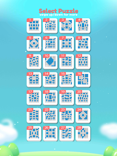 * Option to continue where you left off. If you can't solve a puzzle completely, you can go to another puzzle and return to the previous puzzles at a later time. This is also useful during short breaks or while waiting.