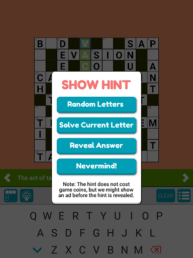 But what if you do get stuck and there's that one brain taxing clue that you can't find the word for? Well, when all else failed, use the built-in helper, so you'll never get stuck forever! The in-game hint system can reveal just ONE letter; multiple RANDOM letters (which can give you the "aha" moment that leads you to the answer); or, reveal the answer. The last option reveals the word and solves the clue for good! Beware though, using the hints will reduce your score. Try to solve all the puzzle without using hints to get 100% score!