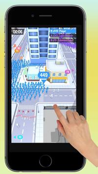 Drag to move, gather people accross the crowd city and crush your opponents with your overwhelming leadership! Get bigger, stronger and crush more and more!