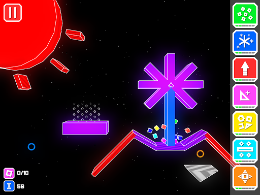 Rescue neon cubes by guiding them through intense real-time puzzles. Use the powers of bouncing, sliding, wind and teleportation while avoiding fire, empty space and tough time-limits to fullfill your destiny and become a master of physics.