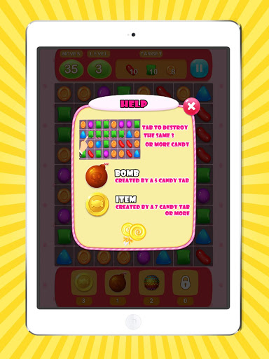 Fun new time killing match 3 puzzle game with candy kingdom, switch and match candies blast to unlock unique powers to help you to create sweet candy combinations and blast through candy friends, more candies you collect the greater your power on the game board.