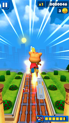 Enjoy jumping with this talking tom cat simulator runner though the city!