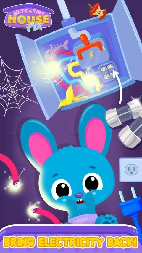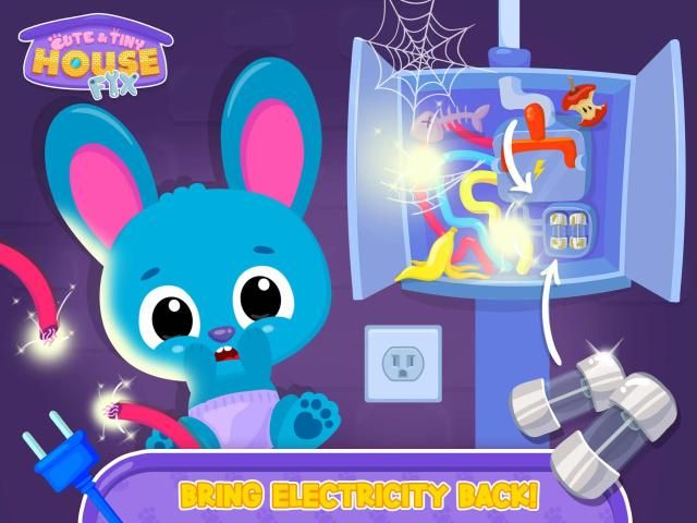 Bring electricity back with cute and smart bunny Blu! Clean up the basement and match the wires correctly!
